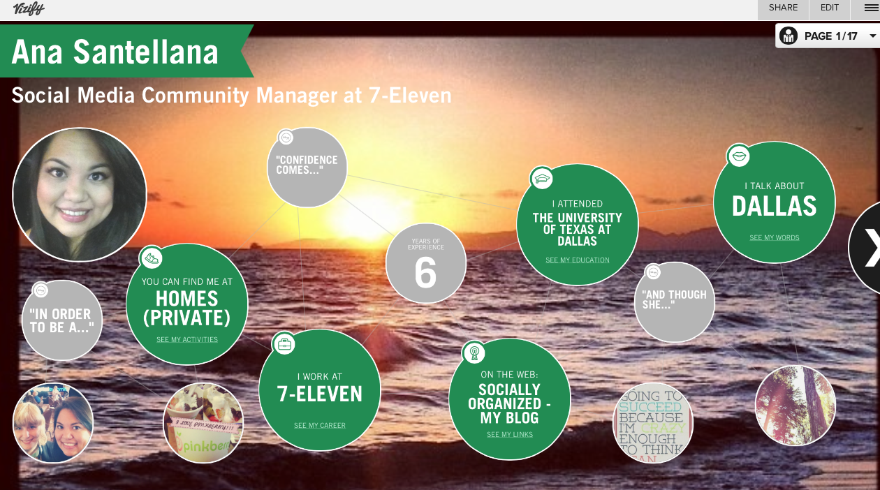A glimpse into my world. For more insight, please visit: https://www.vizify.com/ana-santellana